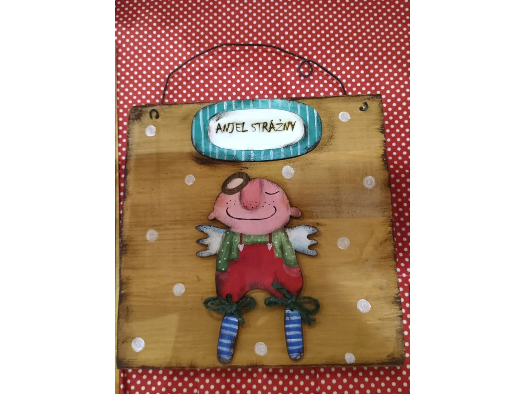 Ručne maľovaný a patinovaný anielik na drevenom podklade. Jeho úsmev nám napraví aj tie najchmúrnejšie dni.