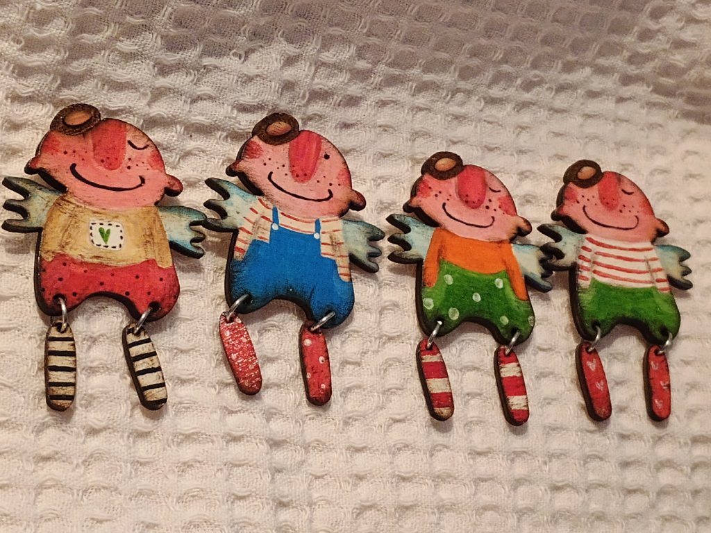 Brošňa je vyrobená z dyhy, preto je veľmi ľahká a skvelo sa nosí na čomkoľvek. Je maľovaná, patinovaná a následne lakovaná. Veľkosť je 7x4,5 cm.