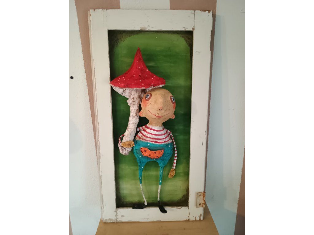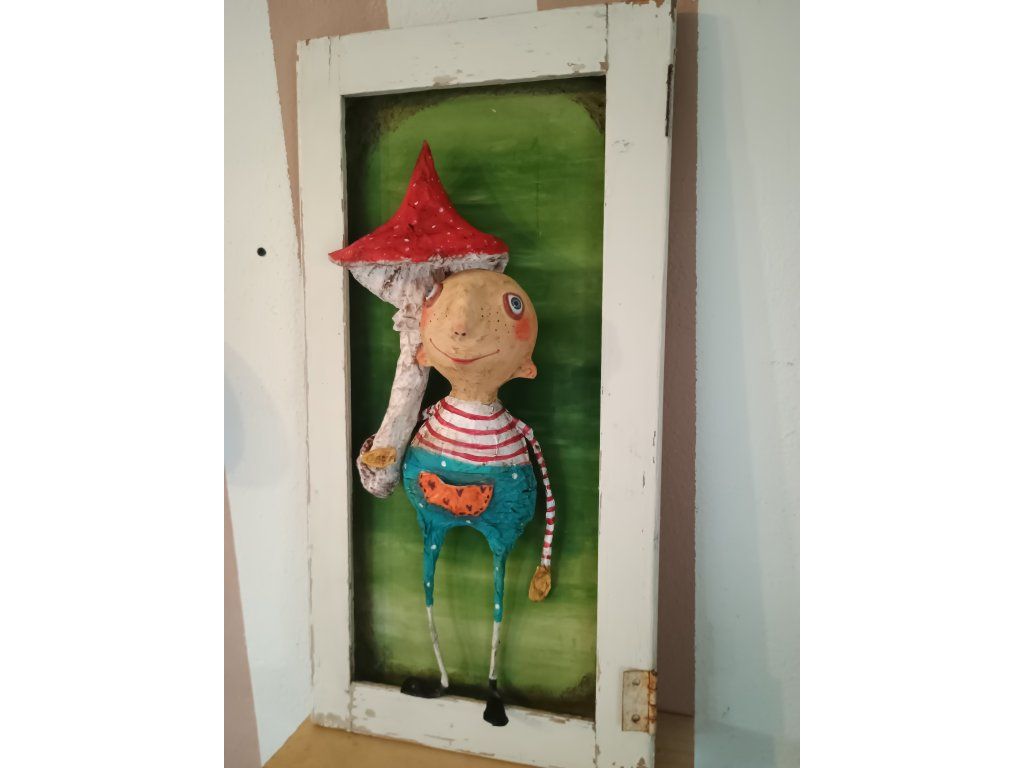 Postava je vyrobená technikou paper mache, vložená do okenného rámu. Obraz je maľovaný, patinovaný a na záver voskovaný. Na zadnej strane je háčik na zavesenie.