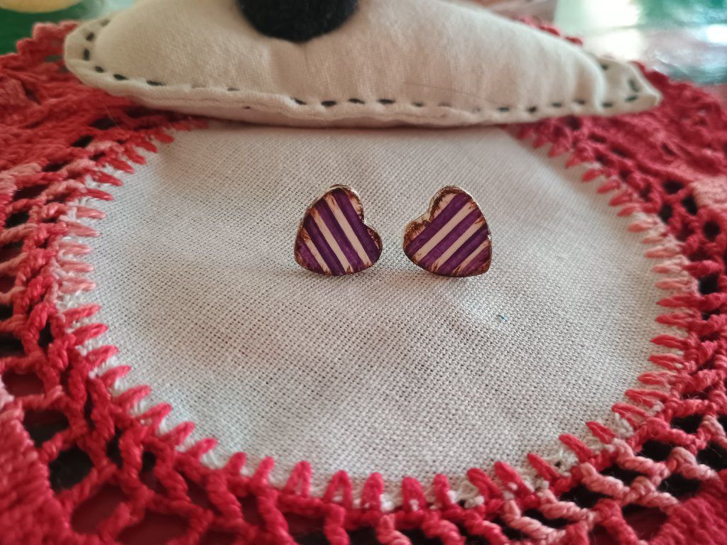 Náušničky sú vyrobené z hmoty schnúcej na vzduchu. Sú maľované, patinované, lakované.