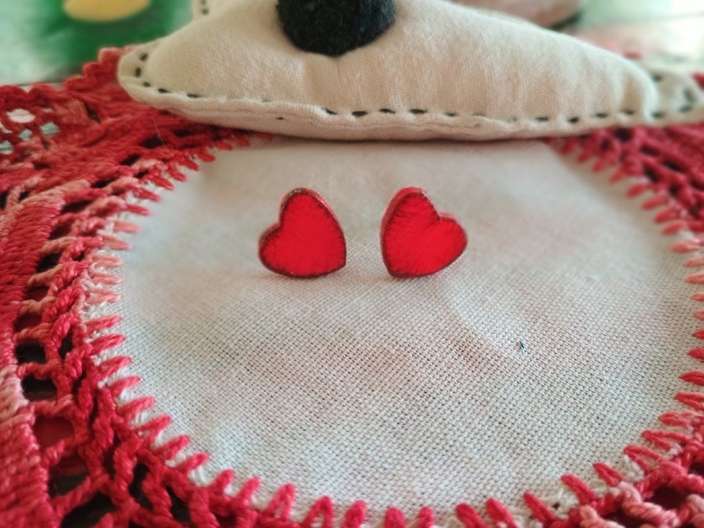 Náušničky sú vyrobené z hmoty schnúcej na vzduchu. Sú maľované, patinované, lakované.