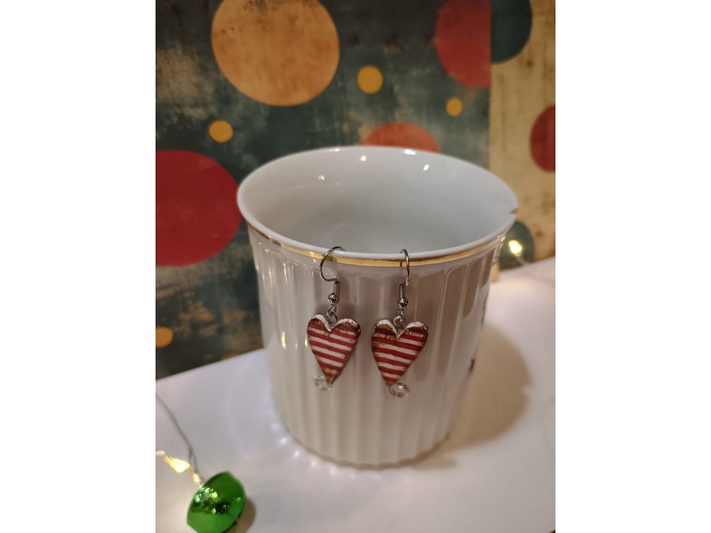 Srdiečko je modelované z hmoty schnúcej na vzduchu, farbené, patinované a lakované. Komponenty sú z chirurgickej ocele.